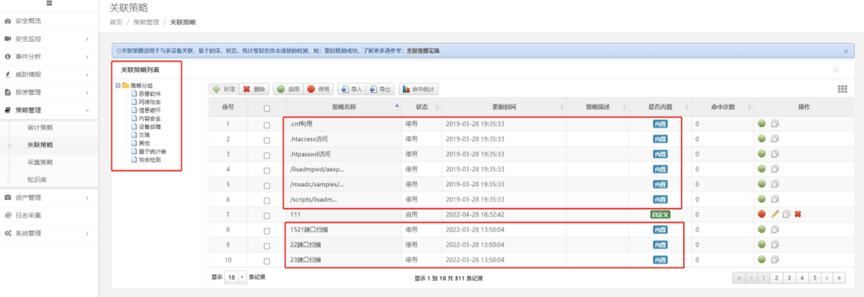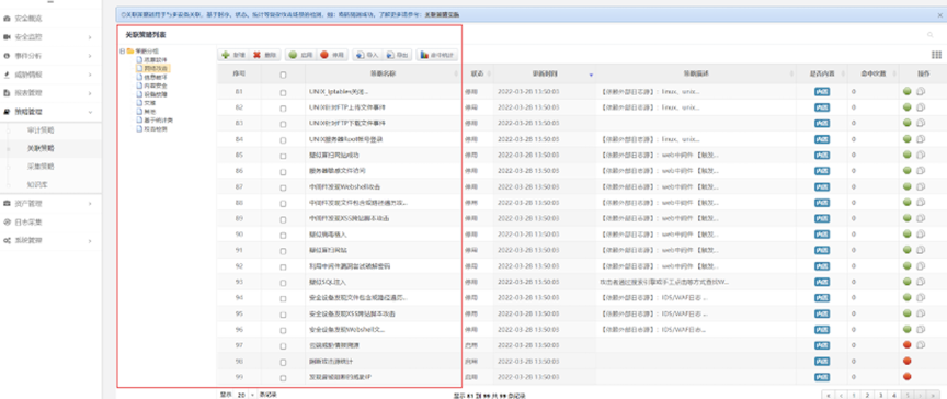 凯发K8数码DCSSA日志审计系统除了等保合规场景之外,还有广泛的应用领域,在恶意软件检测、网络攻击检测等方面也能发挥很好的效果,是一款网络威胁告警利器。在运行过程中,系统充分利用已经内置的场景策略,一旦日志信息中出现关键字,系统将会进行统计,超过设定的阈值就产生告警,相关策略提前预置,可以根据业务实际进行灵活调整。