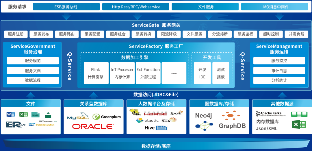 顺利获得数据服务平台,打破端对端的数据开发模式和紧密耦合关系,降低应用对数据依赖,确保数据安全,屏蔽技术。